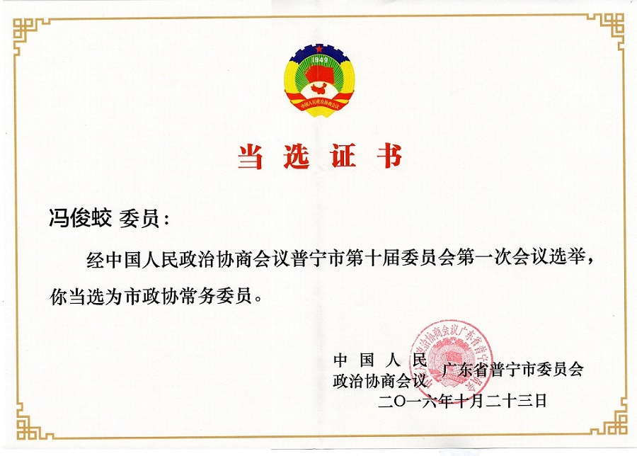 热烈祝贺裕利智能公司总经理冯俊蛟先生当选普宁市政协常务委员!