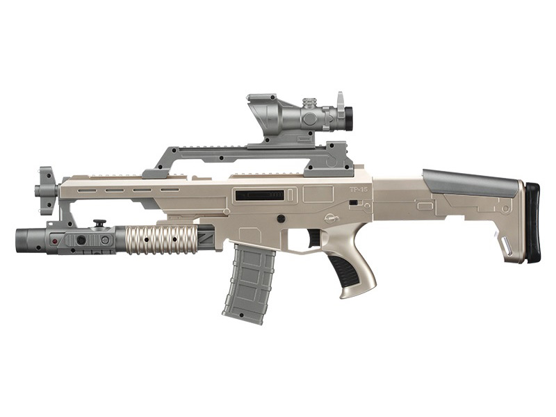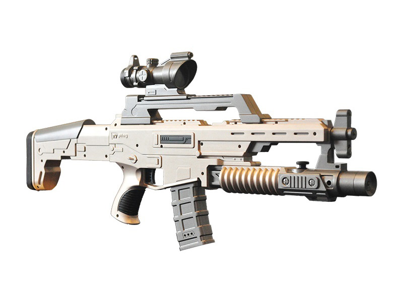 乐视体感游戏枪采用1:1仿真设计,是一款适用于FPS游戏的外设产品。体感游戏枪配备高倍瞄准镜,集成动作识别模块,保证识别的准确度,辨识动作幅度,移动范围。其最佳设射击距离为2-4米支持点射和连射(每秒20发)切换,还支持榴弹模式。其弹夹是一块6000mAh电池(聚合物锂离子)。